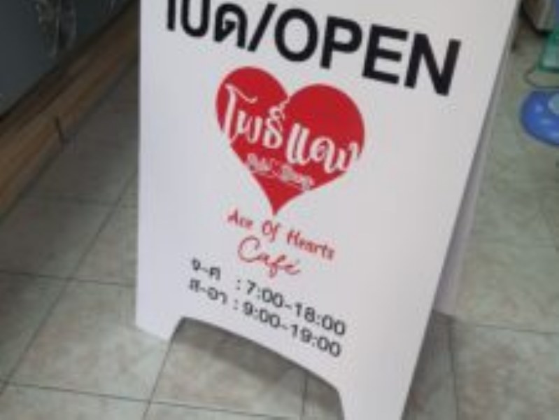 ป้ายพลาสวูดตั้งหน้าร้านกาแฟ