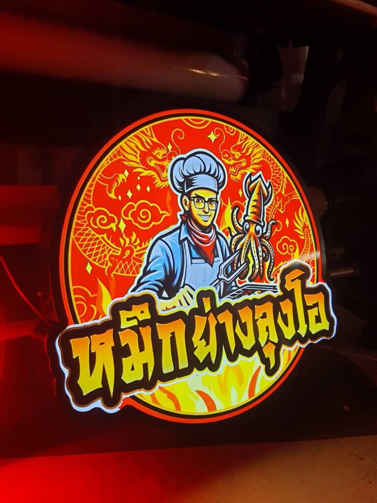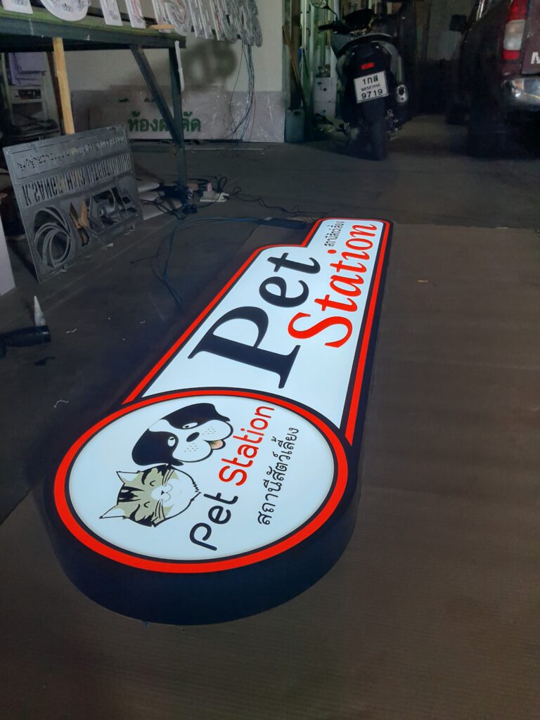 ป้ายกล่องไฟไดคัท, ป้ายไฟ, ป้ายกล่องไฟออกหน้า