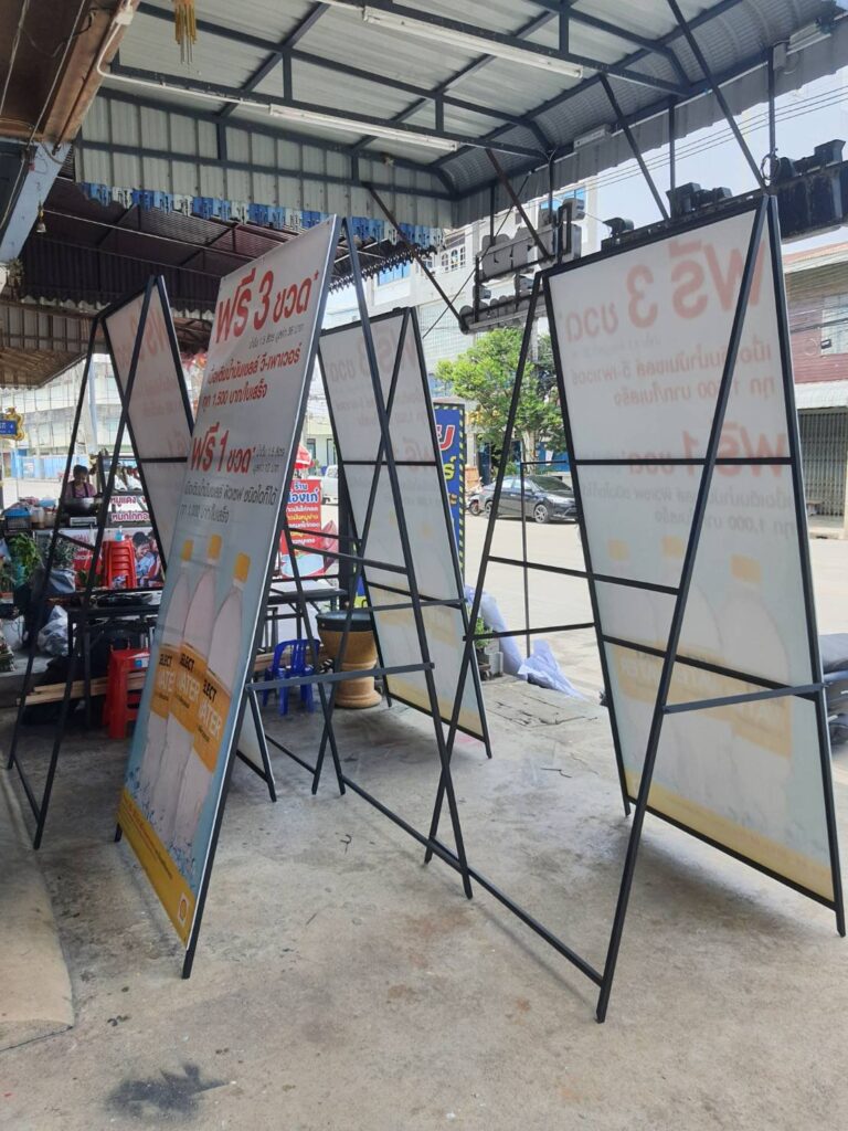 ป้ายโครงเหล็กติดพีพีบอร์ดพร้อมขาตั้งพับเก็บได้