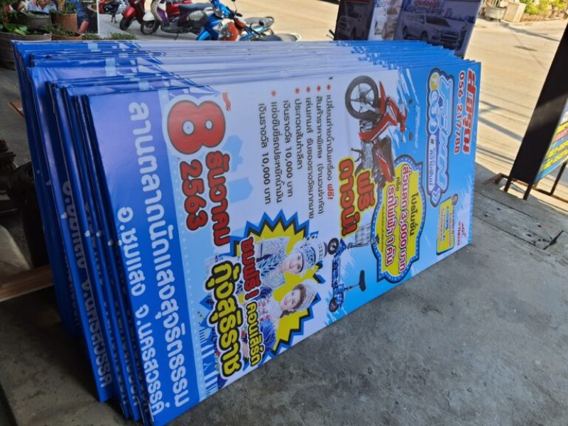 ป้ายไวนิลขึงโครงไม้