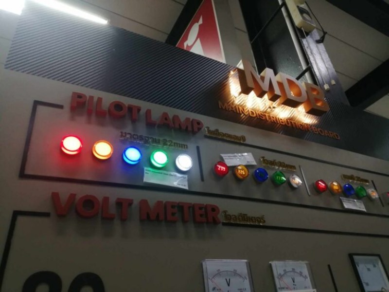 ตกแต่งตู้โชว์อุปกรณ์ไฟฟ้า ด้วยตัวอักษรโลหะ